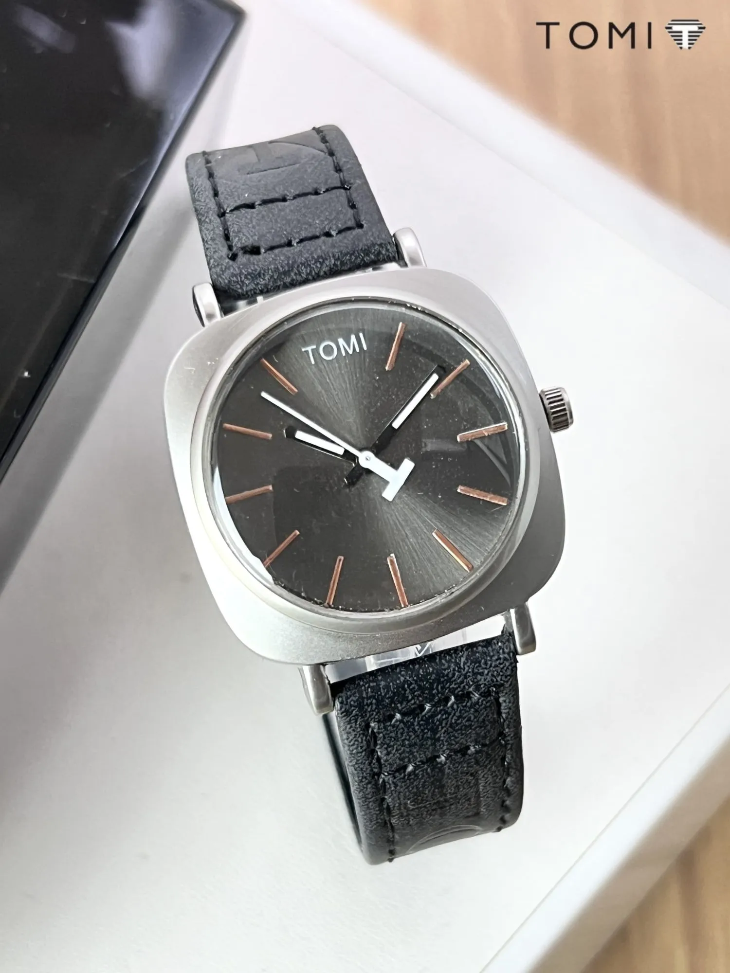 TOMI Original Leather Strap Watch – Waterproof | Box Included | Elegant Design for Everyday Wear